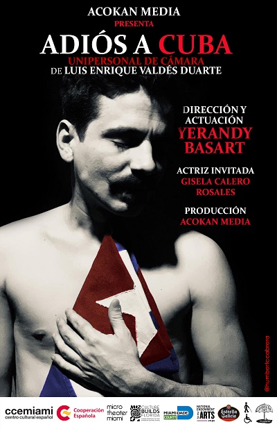 CCEMiami y Acokan Media presentan la obra de teatro Adiós a Cuba, un unipersonal en formato teatro de cámara del autor Luis Enrique Valdez Duarte con la dirección y actuación de Yerandy Basart. Un viaje hacia el pasado que se estrena el viernes 10 de septiembre en la sala del CCEMiami.