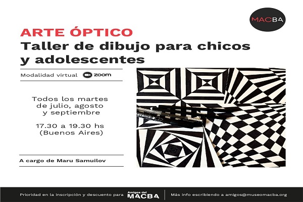Arte óptico-Taller de dibujo para chicos y adolescentes. El curso está pensado para niños y adolescentes que quieran iniciarse en las artes plásticas a través del dibujo geométrico y sus instrumentos básicos. Consiste en 12 clases prácticas en las que se realizarán ejercicios partiendo de figuras geométricas simples para llegar a estructuras complejas que abarcarán 3 temas: las líneas rectas, las líneas curvas y la combinación de ambas dos. Se enseñarán conceptos de luz y sombra, volumen, profundidad y patrones para llegar a diseños más sofisticados.
