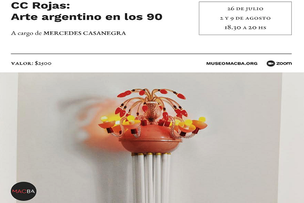 CC ROJAS: ARTE ARGENTINO EN LOS 90. Curso a cargo de Mercedes casanegra. Días: 26 de julio, 2 y 6 de agosto de 2021. Horario: 18.30 a 20 hs (Buenos Aires). Costo: $2500.- (Total de clases). Modalidad: Educación online por ZoomSe entrega certificado de asistencia