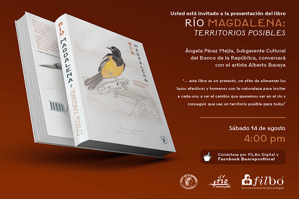 Como parte de los eventos de la Feria del Libro 2021, el próximo sábado 14 de agosto a las 4:00 p.m. el Banco de la República presenta su más reciente publicación Río Magdalena: territorios posibles, un libro que, en seis textos principales, escritos por expertos en diferentes disciplinas, nos dan su visión sobre cómo nos relacionamos con el río. Además, tiene un prólogo de Wade Davis y un ensayo visual del artista colombiano Alberto Baraya. Este compendio de voces invita a la reflexión sobre los ríos como territorios de vida y a pensar cómo nos relacionamos con los recursos hídricos. La publicación forma parte del proyecto nacional El río: territorios posibles.