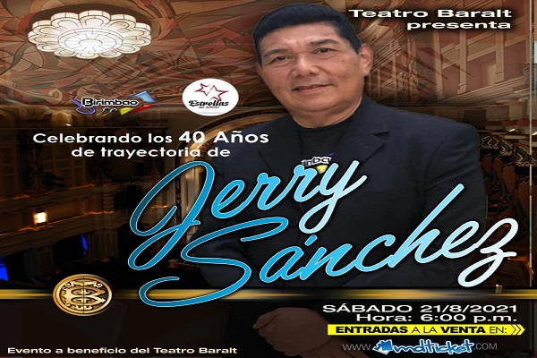 Este sábado 21 de agosto a las 6:00 p.m., el Teatro Baralt presenta a Jerry Sánchez para celebrar sus cuarenta años de trayectoria, en un concierto a beneficio de la institución.