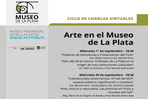 El Museo de La Plata, el Instituto de Historia del Arte Argentino y Americano (IHAAA) de la Facultad de Artes y el Museo provincial de Bellas Artes Emilio Pettoruti brindan un ciclo de charlas para difundir los conocimientos y avances de las investigaciones sobre los bienes culturales que integran el patrimonio artístico del Museo de La Plata.