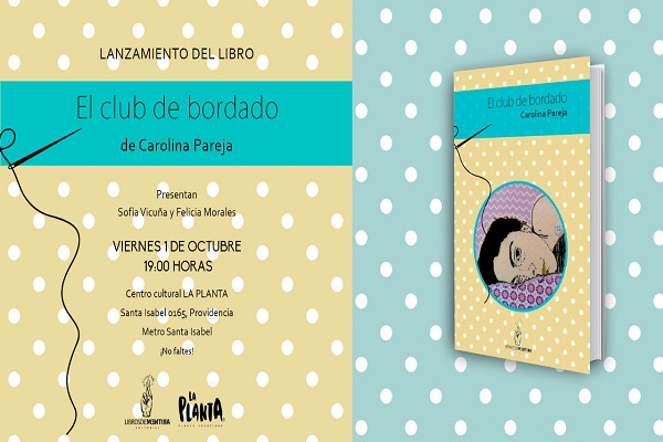 El próximo viernes 1 de octubre a partir de las 19 hrs., la editorial Librosdementira realizará el lanzamiento del libro «El club de bordado“ de la autora Carolina Pareja en el Centro Cultural La Planta, ubicado en Santa Isabel 0165, Providencia (Metro Santa Isabel).