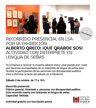 Recorre la muestra Alberto Greco: ¡Qué grande sos!, visita que haremos acompañados de un intérprete de lengua de señas para facilitar la participación de las personas con discapacidad auditiva.