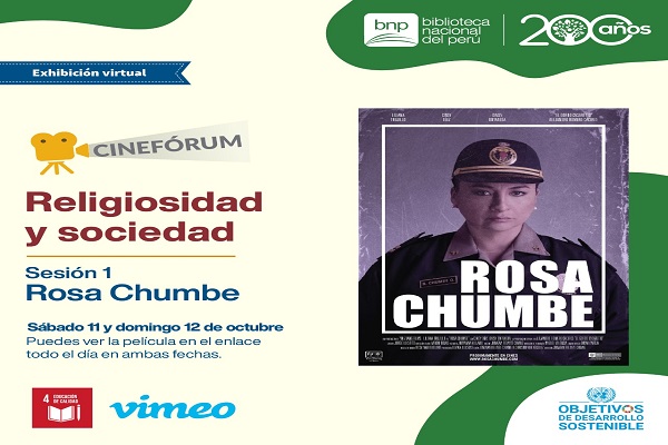 Este nuevo ciclo cinematográfico, denominado Religiosidad y Sociedad, se inaugura con «Rosa Chumbe» (2015), de Jonatan Relayze, largometraje que podrá visualizarse a través de https://vimeo.com/501144860 con la contraseña bnp el sábado 9 y domingo 10 de octubre.