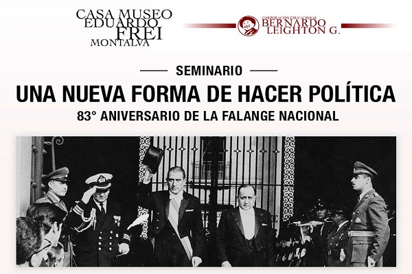 - Casa Museo Eduardo Frei Montalva en conjunto con la Corporación Educacional Bernardo Leighton Guzmán preparan este Seminario titulado “Nueva Forma de Hacer Política”, para dialogar sobre los objetivos que llevaron a la fundación de la Falange Nacional, en la realidad política, social y económica que se vivía en ese entonces en el país.