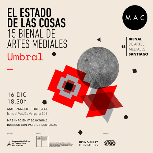 Bienal de Artes Mediales de Santiago – UMBRAL. Con la curatoría «El estado de las cosas», pensada especialmente para el MAC en la que doce artistas nacionales e internacionales invitan a repensar el contexto político, social y medioambiental actual.