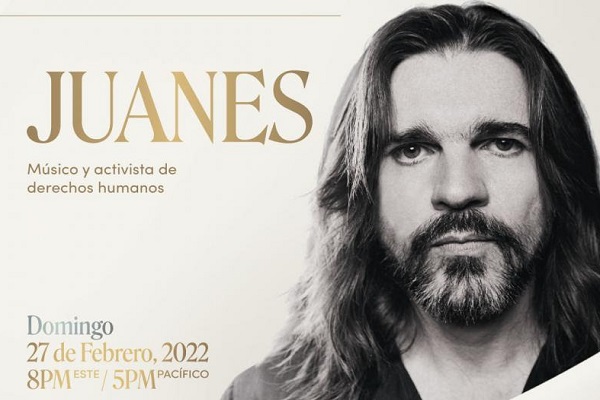 Como homenajeado a los Premios Internacionales de la Paz 2022, Juanes se une al destacado actor, productor ejecutivo y activista Forest Whitaker; fenómeno de Internet y autor de «Humans of New York”, Brandon Stanton; el presidente ejecutivo de Mastercard, Ajay Banga; y la presidente y directora ejecutiva de AMD, Dra. Lisa Su; y la líder de la juventud indígena y ambientalista, Tokata Iron Eyes, de la tribu Standing Rock Sioux.