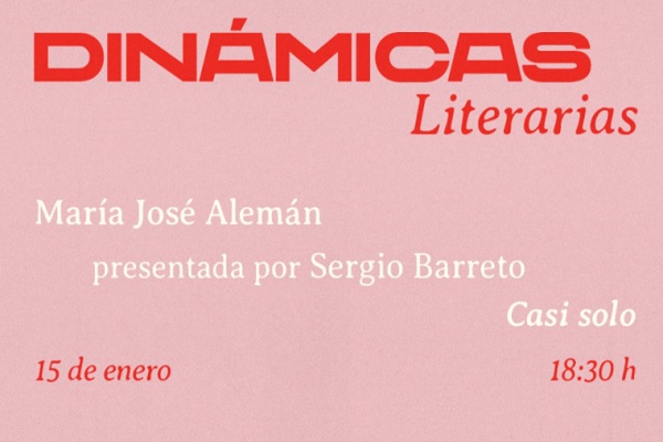 El nuevo poemario de la escritora María José Alemán Bastarrica (La Laguna, 1967), Casi solo (Ediciones Franz, 2021). Esta actividad, que forma parte de Dinámicas literarias, estará presentada por Sergio Barreto, coordinador de este ciclo. Para asistir a este acto, que es gratuito pero de aforo limitado, se requiere de inscripción previa enviando un correo a actividades@teatenerife.es en el que se indiquen nombre, DNI y un número de teléfono de contacto.