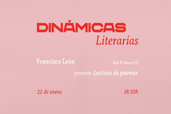 TEA Tenerife Espacio de las Artes acoge el sábado [día 22], a las 18:30 horas, una lectura poética de Francisco León. Esta actividad, en la que el poeta leerá una selección de poemas del conjunto de su obra, forma parte de Dinámicas literarias que coordina Sergio Barreto. Para asistir a este acto, que es gratuito pero de aforo limitado, se requiere de inscripción previa enviando un correo a actividades@teatenerife.es en el que se indiquen nombre, DNI y un número de teléfono de contacto.