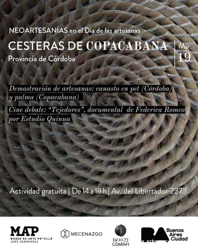 Organizada por el Ministerio de Cultura de la Ciudad de Buenos Aires, Museos BA presenta Neoartesanías en el día de las y los artesanos, en el Museo de Arte Popular José Hernández (MAP). Con motivo del festejo del Día del artesano, el sábado 19 y domingo 20 de marzo de 13 a 20 horas, se realizarán distintas actividades.