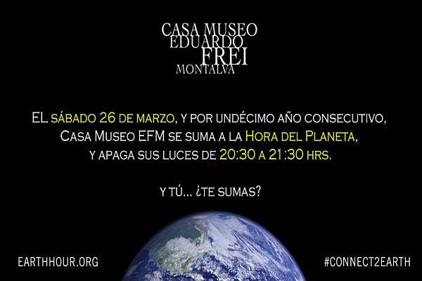 La Hora del Planeta o Earth Hour en el mundo, cuyo objetivo es demostrar globalmente la preocupación por el cambio climático hace 15 años y fomentar un compromiso para encontrar soluciones. El sábado 26 de marzo de 20:30 a 21:30 horas (hora local de Chile), la WWF le pide a las personas, empresas, gobiernos y organizaciones alrededor del mundo apagar sus luces durante una hora. Participarán millones de personas en este evento.