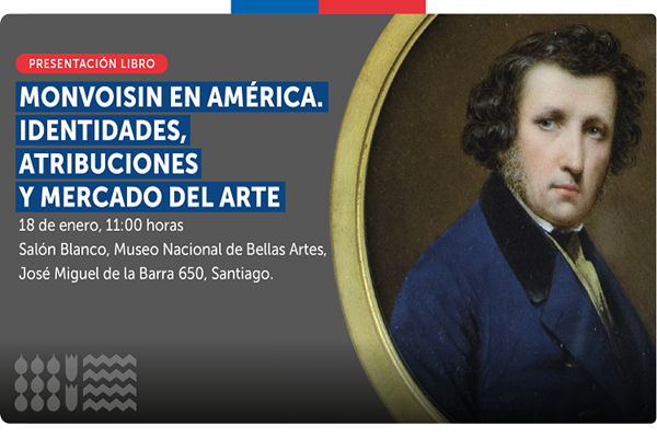 Les invitamos a la presentación de Monvoisin en América. Identidades, atribuciones y mercado del arte, tercera publicación de avances de la investigación en torno a la figura, obra y legado del pintor francés Auguste Raymond Quinsac Monvoisin (1790-1870), quien arribó a América en 1842 y recorrió Brasil, Argentina, Uruguay y Perú antes de establecerse en Chile en 1843 durante una década. La presentación del ejemplar se realiza gracias a la participación de la Subdirección de Investigación del Servicio Nacional del Patrimonio Cultural junto al MNBA.