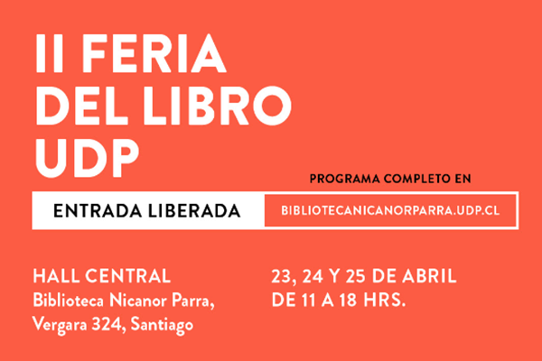 Este 23, 24 y 25 de abril la Universidad Diego Portales celebra el mes del libro con su segunda versión de la FERIA DEL LIBRO UDP. Actividad dirigida a todo público que contará con más de 60 editoriales y proyectos literarios acompañado de una amplia agenda cultural.